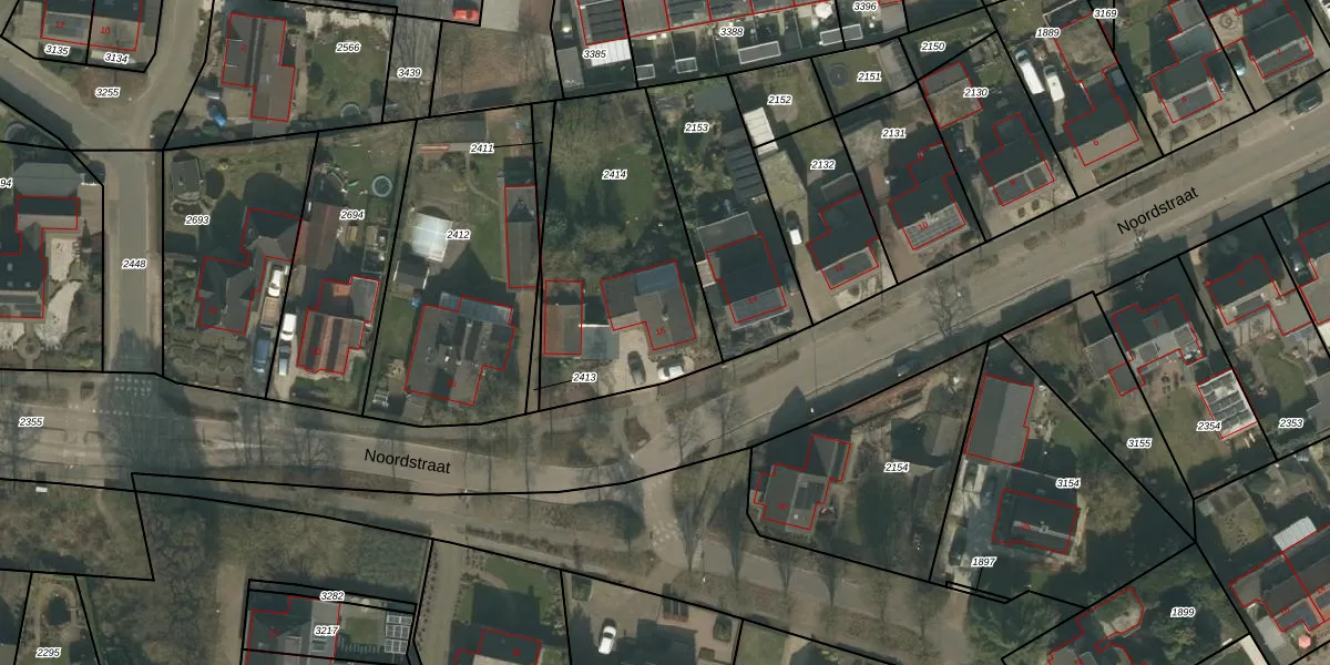 Het perceel waarop Noordstraat 16 staat heeft een oppervlakte van 964 m². Dit is een groot perceel. De perceeloppervlakte wordt geregistreerd door het Kadaster. Gedetailleerde informatie over de maten van dit perceel kunt u vinden in het rapport Kadastrale kaart met maatvoering van Noordstraat 16.