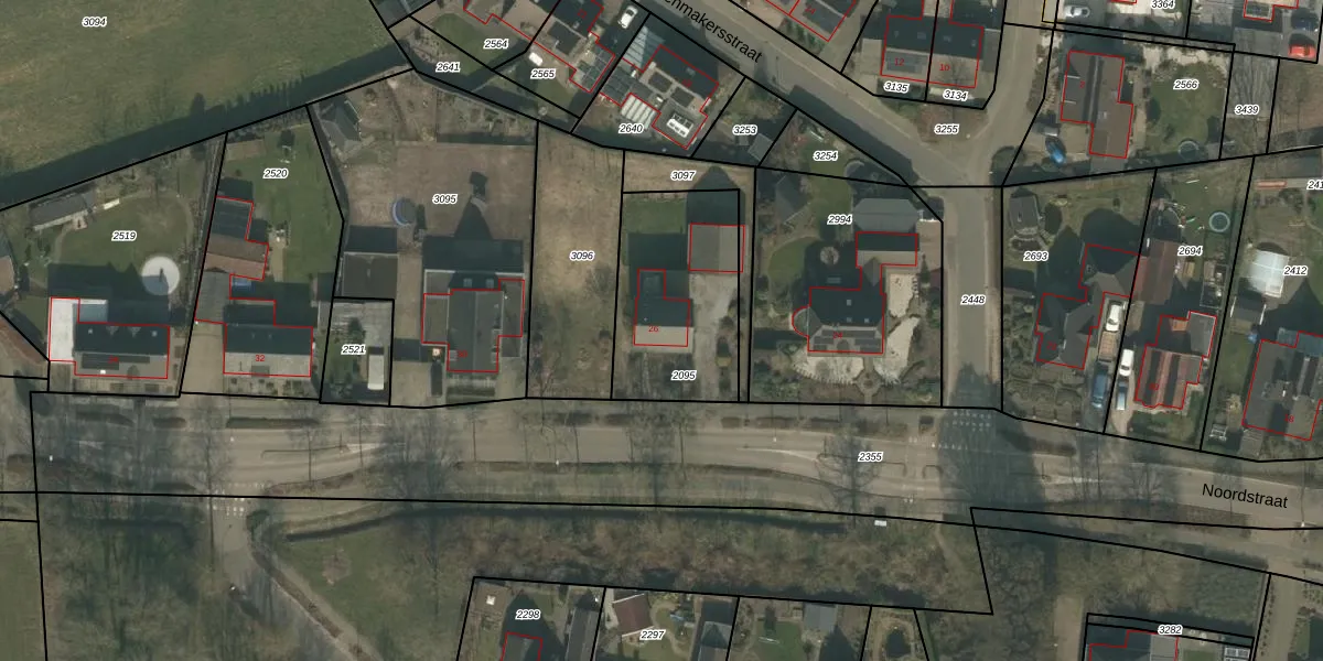 Noordstraat 26 is gelegen op kadastraal perceel WRJ00A2095. Deze kadastrale aanduiding is uniek en wordt gebruikt door het Kadaster om eigendomsrechten en andere zakelijke rechten vast te leggen. Het perceel maakt onderdeel uit van de kadastrale gemeente Wanroij.