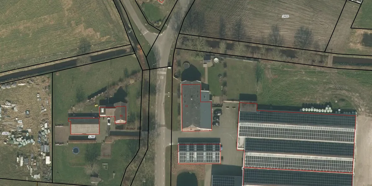 Het adres ligt op het perceel WRJ00-K-1379, dat zich in de kadastrale gemeente Wanroij bevindt. De oppervlakte van het perceel is 3,0 ha. Dat is groter dan gemiddeld in Wanroij, waar de gemiddelde perceeloppervlakte op 1,1 ha ligt. Het kleinste perceel in de kadastrale gemeente is 0 m² groot. De grootste perceeloppervlakte is 95,7 ha. Op het perceel zijn 2 adressen aanwezig. In de Basisregistratie Kadaster (BRK) werden de grenzen van het perceel geregistreerd op 03-02-2023.