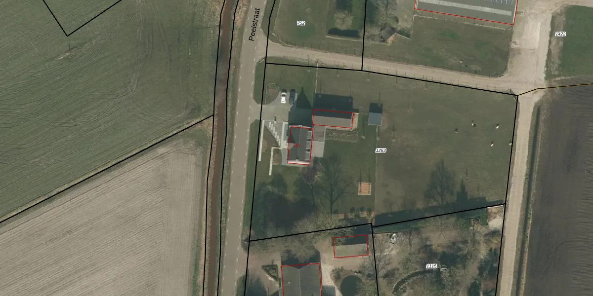 Het perceel waarop Peelstraat 21-A staat heeft een oppervlakte van 4255 m². Dit is een zeer groot perceel. De perceeloppervlakte wordt geregistreerd door het Kadaster. Gedetailleerde informatie over de maten van dit perceel kunt u vinden in het rapport Kadastrale kaart met maatvoering van Peelstraat 21-A.