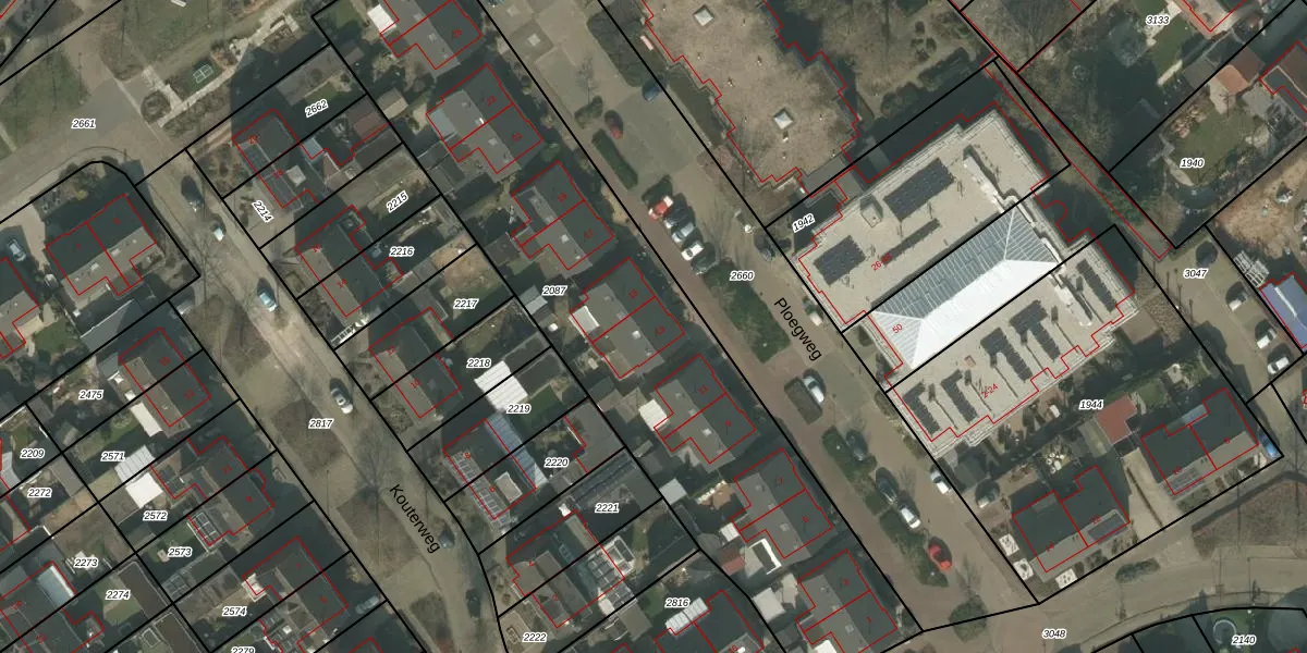 Het perceel waarop Ploegweg 13 staat heeft een oppervlakte van 2690 m². Dit is een zeer groot perceel. De perceeloppervlakte wordt geregistreerd door het Kadaster. Gedetailleerde informatie over de maten van dit perceel kunt u vinden in het rapport Kadastrale kaart met maatvoering van Ploegweg 13.