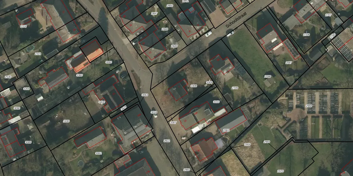 Het perceel waarop Schoolstraat 7 staat heeft een oppervlakte van 628 m². Dit is een groot perceel. De perceeloppervlakte wordt geregistreerd door het Kadaster. Gedetailleerde informatie over de maten van dit perceel kunt u vinden in het rapport Kadastrale kaart met maatvoering van Schoolstraat 7.