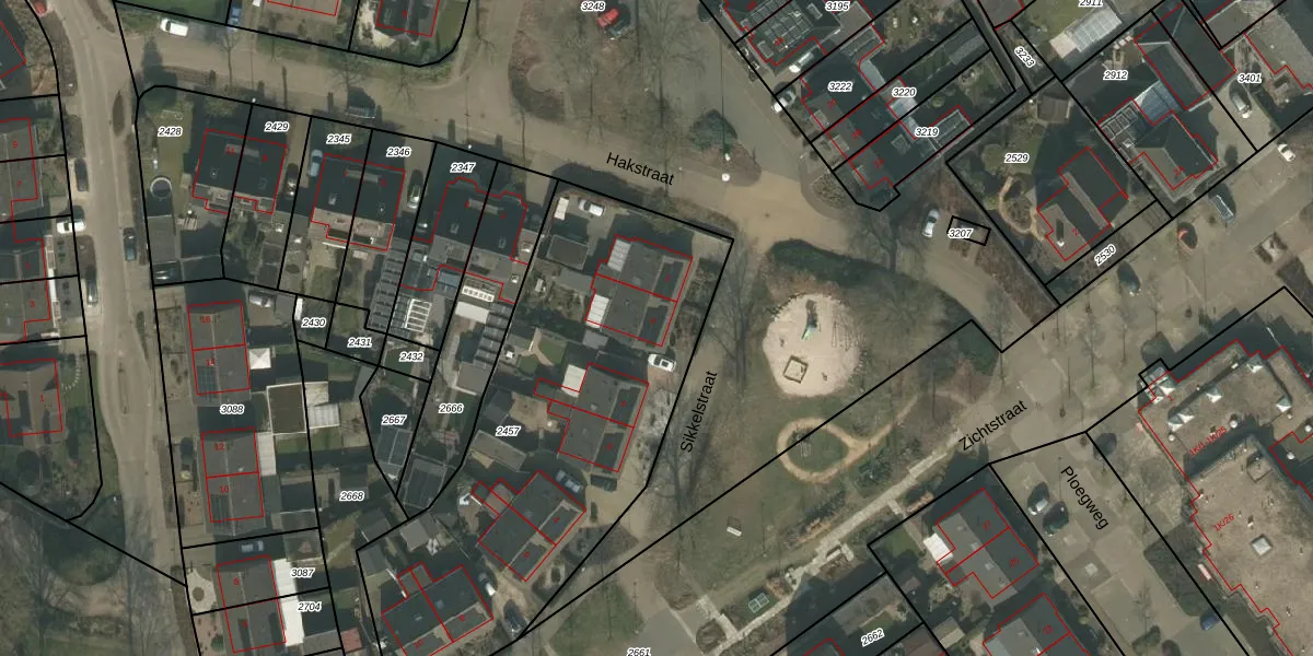 Het perceel waarop Sikkelstraat 4 staat heeft een oppervlakte van 2080 m². Dit is een zeer groot perceel. De perceeloppervlakte wordt geregistreerd door het Kadaster. Gedetailleerde informatie over de maten van dit perceel kunt u vinden in het rapport Kadastrale kaart met maatvoering van Sikkelstraat 4.