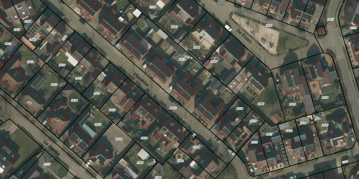 Het perceel waarop Vlasakker 12 staat heeft een oppervlakte van 1731 m². Dit is een zeer groot perceel. De perceeloppervlakte wordt geregistreerd door het Kadaster. Gedetailleerde informatie over de maten van dit perceel kunt u vinden in het rapport Kadastrale kaart met maatvoering van Vlasakker 12.