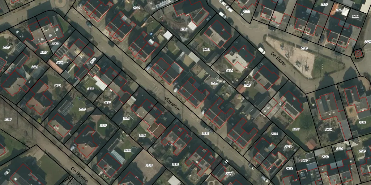 Vlasakker 16 is gelegen op kadastraal perceel WRJ00A2513. Deze kadastrale aanduiding is uniek en wordt gebruikt door het Kadaster om eigendomsrechten en andere zakelijke rechten vast te leggen. Het perceel maakt onderdeel uit van de kadastrale gemeente Wanroij.