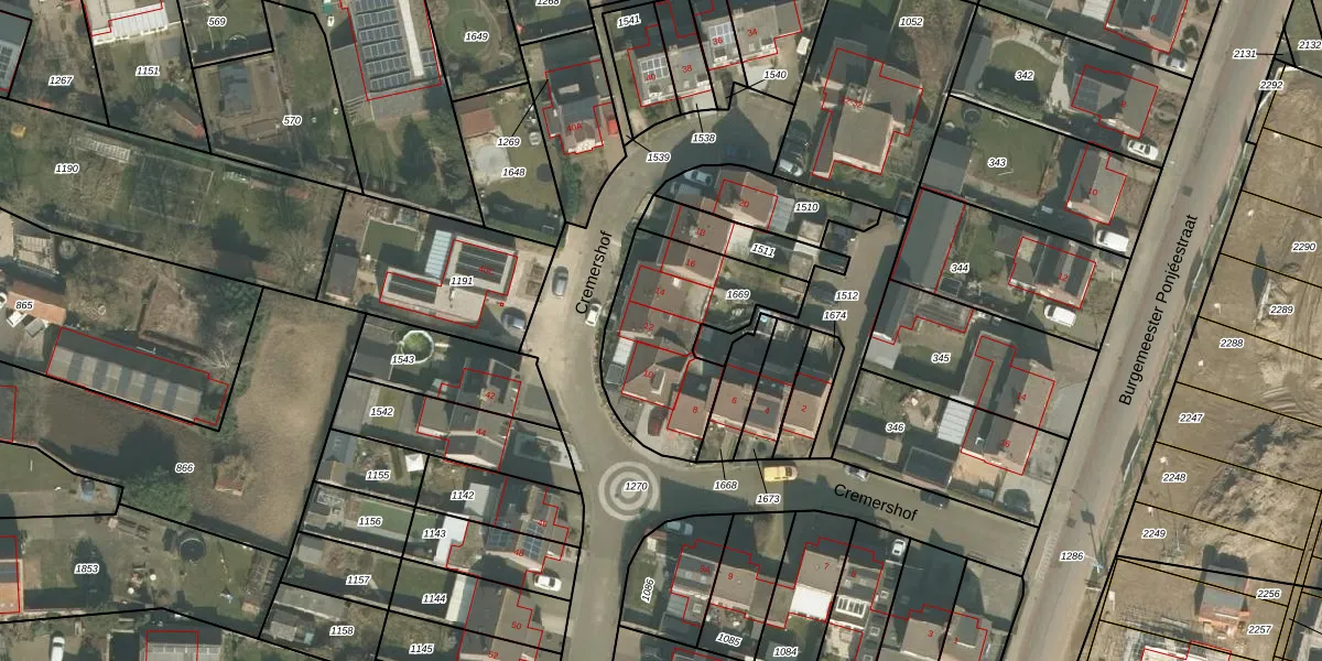 Het perceel waarop Cremershof 12 staat heeft een oppervlakte van 578 m². Dit is een groot perceel. De perceeloppervlakte wordt geregistreerd door het Kadaster. Gedetailleerde informatie over de maten van dit perceel kunt u vinden in het rapport Kadastrale kaart met maatvoering van Cremershof 12.