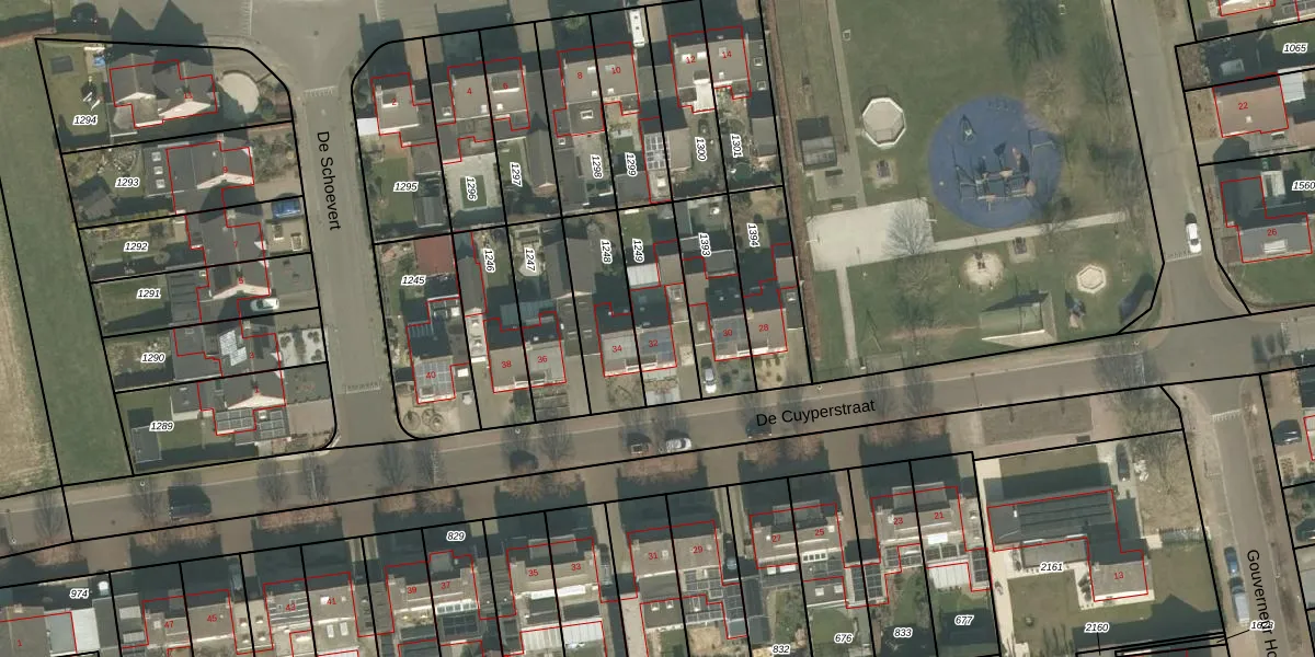 Het perceel waarop De Cuyperstraat 32 staat heeft een oppervlakte van 259 m². Dit is een middelgroot perceel. De perceeloppervlakte wordt geregistreerd door het Kadaster. Gedetailleerde informatie over de maten van dit perceel kunt u vinden in het rapport Kadastrale kaart met maatvoering van De Cuyperstraat 32.