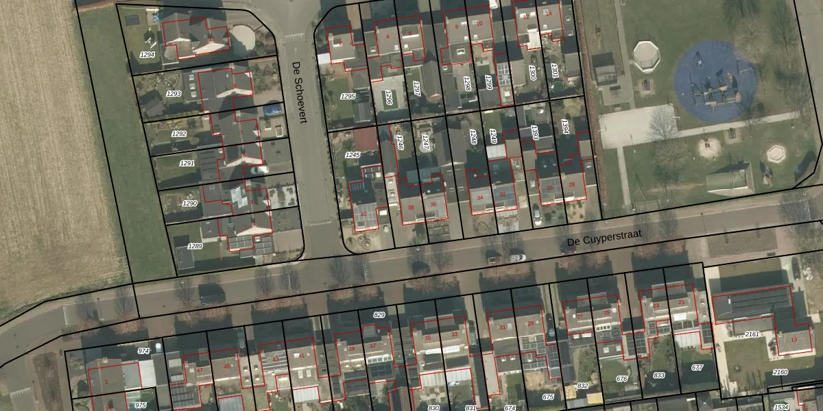 Gebruik de zoekbalk of klik op een perceel voor informatie over de adressen binnen dit perceel.