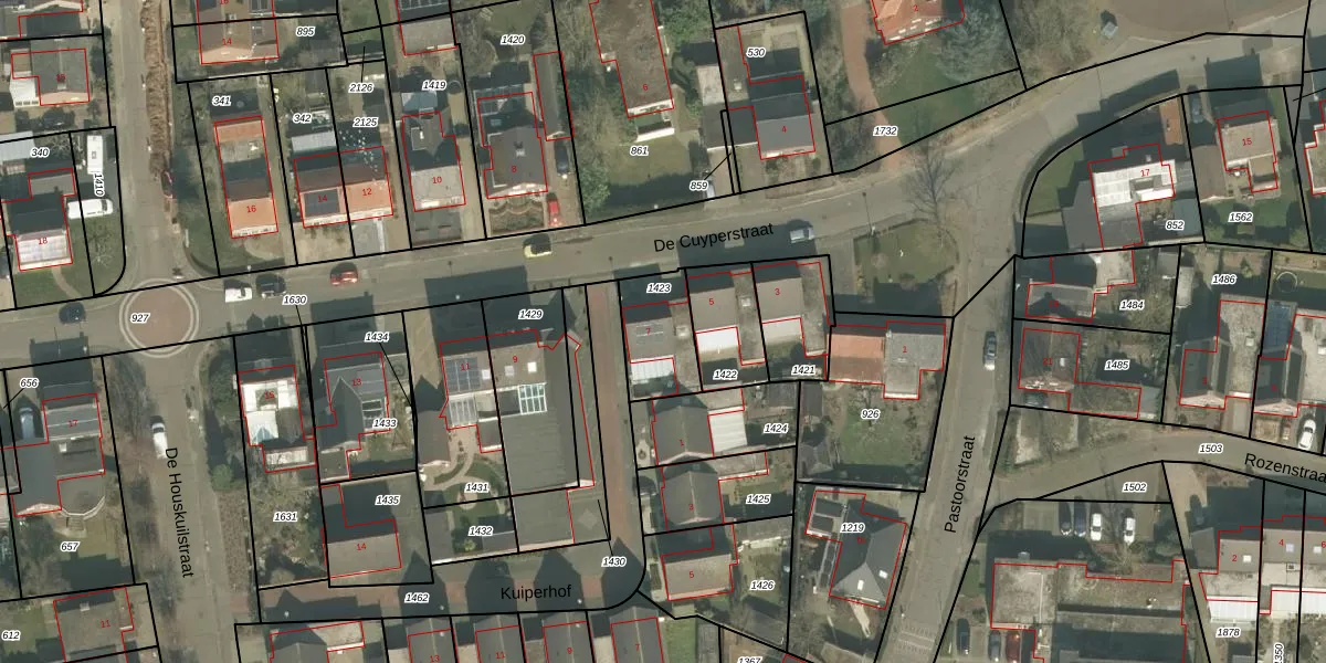 De Cuyperstraat 7 is gelegen op kadastraal perceel WSM02D1423. Deze kadastrale aanduiding is uniek en wordt gebruikt door het Kadaster om eigendomsrechten en andere zakelijke rechten vast te leggen. Het perceel maakt onderdeel uit van de kadastrale gemeente Wanssum.
