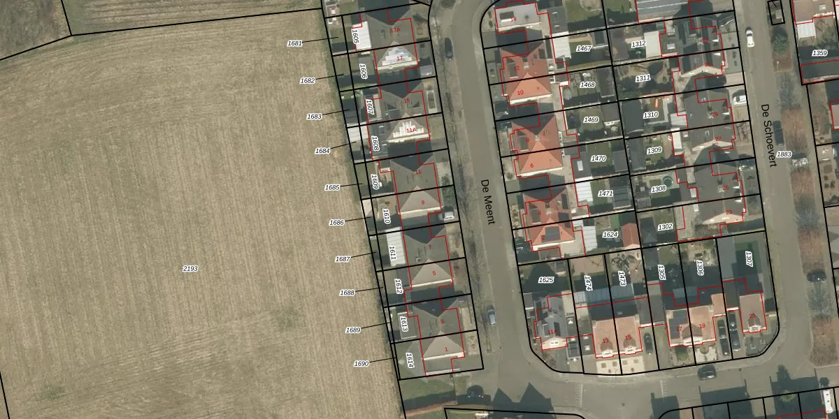 Het perceel waarop De Meent 9 staat heeft een oppervlakte van 176 m². Dit is een middelgroot perceel. De perceeloppervlakte wordt geregistreerd door het Kadaster. Gedetailleerde informatie over de maten van dit perceel kunt u vinden in het rapport Kadastrale kaart met maatvoering van De Meent 9.