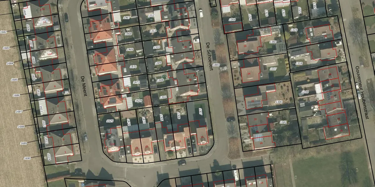 Het perceel waarop De Schoevert 23 staat heeft een oppervlakte van 265 m². Dit is een middelgroot perceel. De perceeloppervlakte wordt geregistreerd door het Kadaster. Gedetailleerde informatie over de maten van dit perceel kunt u vinden in het rapport Kadastrale kaart met maatvoering van De Schoevert 23.