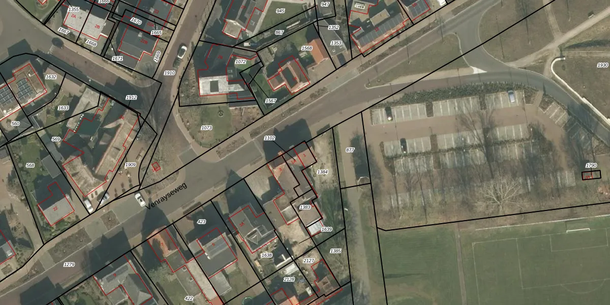 Het perceel waarop Venrayseweg 1-A staat heeft een oppervlakte van 94 m². Dit is een klein perceel. De perceeloppervlakte wordt geregistreerd door het Kadaster. Gedetailleerde informatie over de maten van dit perceel kunt u vinden in het rapport Kadastrale kaart met maatvoering van Venrayseweg 1-A.