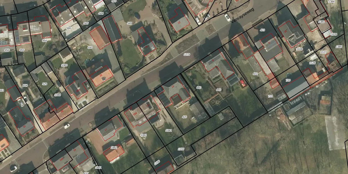 Het perceel waarop Venrayseweg 13 staat heeft een oppervlakte van 560 m². Dit is een groot perceel. De perceeloppervlakte wordt geregistreerd door het Kadaster. Gedetailleerde informatie over de maten van dit perceel kunt u vinden in het rapport Kadastrale kaart met maatvoering van Venrayseweg 13.