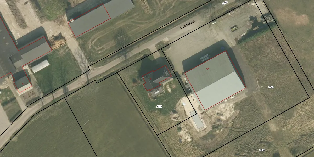 Het perceel waarop Vosseven 5 staat heeft een oppervlakte van 1440 m². Dit is een zeer groot perceel. De perceeloppervlakte wordt geregistreerd door het Kadaster. Gedetailleerde informatie over de maten van dit perceel kunt u vinden in het rapport Kadastrale kaart met maatvoering van Vosseven 5.
