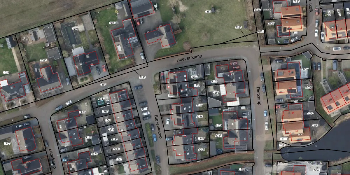 Het perceel waarop Biezenkamp 50 staat heeft een oppervlakte van 240 m². Dit is een middelgroot perceel. De perceeloppervlakte wordt geregistreerd door het Kadaster. Gedetailleerde informatie over de maten van dit perceel kunt u vinden in het rapport Kadastrale kaart met maatvoering van Biezenkamp 50.