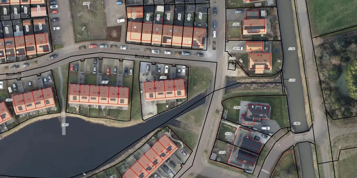 Het perceel waarop Boskolk 1 staat heeft een oppervlakte van 713 m². Dit is een groot perceel. De perceeloppervlakte wordt geregistreerd door het Kadaster. Gedetailleerde informatie over de maten van dit perceel kunt u vinden in het rapport Kadastrale kaart met maatvoering van Boskolk 1.