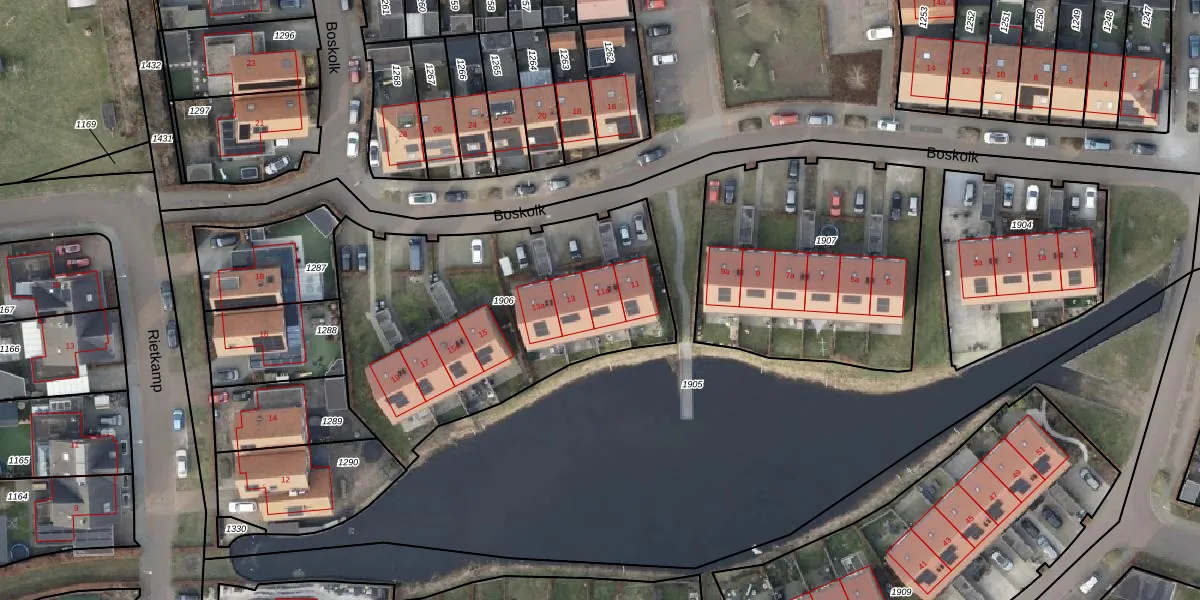 Het perceel waarop Boskolk 11-a staat heeft een oppervlakte van 1540 m². Dit is een zeer groot perceel. De perceeloppervlakte wordt geregistreerd door het Kadaster. Gedetailleerde informatie over de maten van dit perceel kunt u vinden in het rapport Kadastrale kaart met maatvoering van Boskolk 11-a.