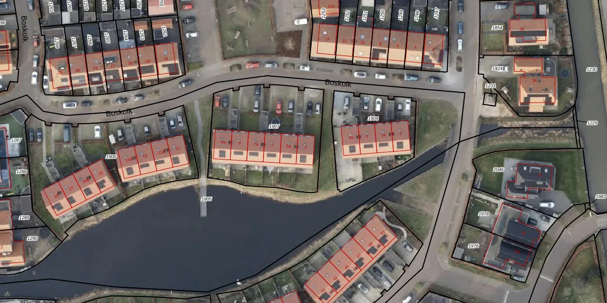 Het perceel waarop Boskolk 5 staat heeft een oppervlakte van 1185 m². Dit is een zeer groot perceel. De perceeloppervlakte wordt geregistreerd door het Kadaster. Gedetailleerde informatie over de maten van dit perceel kunt u vinden in het rapport Kadastrale kaart met maatvoering van Boskolk 5.