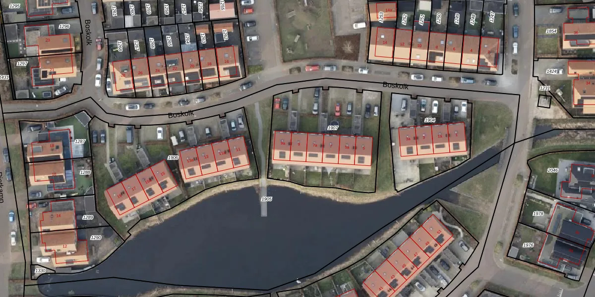 Het perceel waarop Boskolk 9 staat heeft een oppervlakte van 1185 m². Dit is een zeer groot perceel. De perceeloppervlakte wordt geregistreerd door het Kadaster. Gedetailleerde informatie over de maten van dit perceel kunt u vinden in het rapport Kadastrale kaart met maatvoering van Boskolk 9.