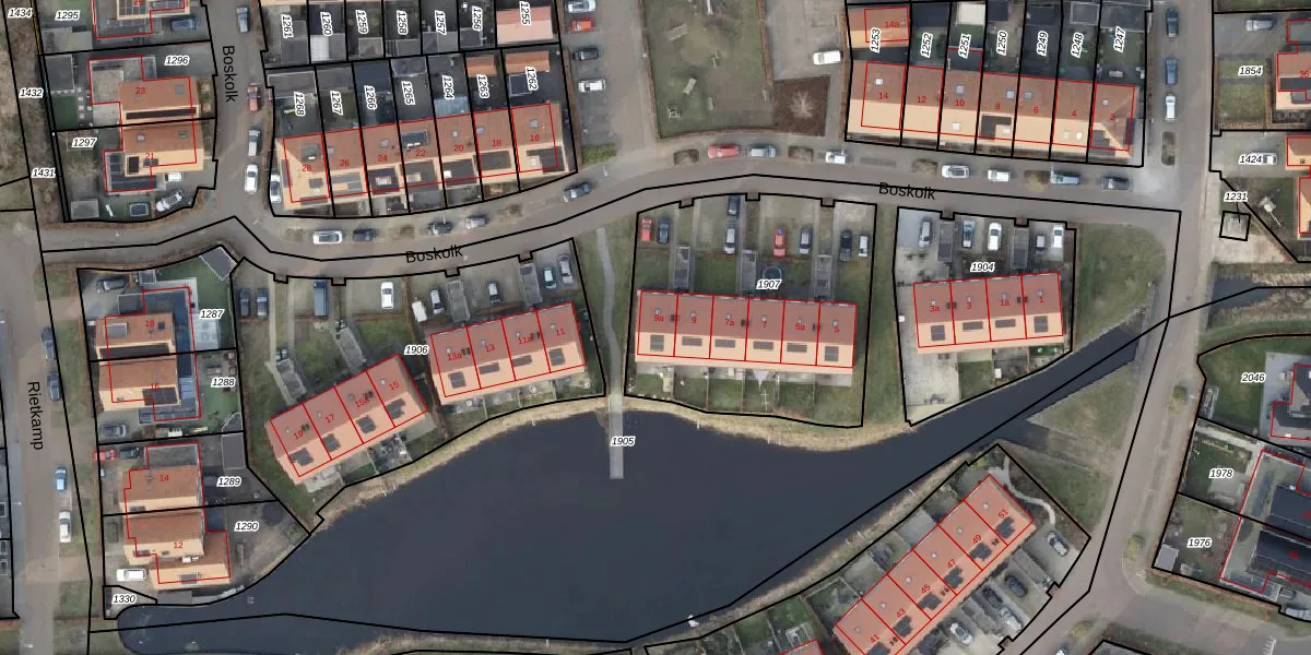 Het perceel waarop Boskolk 9-a staat heeft een oppervlakte van 1185 m². Dit is een zeer groot perceel. De perceeloppervlakte wordt geregistreerd door het Kadaster. Gedetailleerde informatie over de maten van dit perceel kunt u vinden in het rapport Kadastrale kaart met maatvoering van Boskolk 9-a.