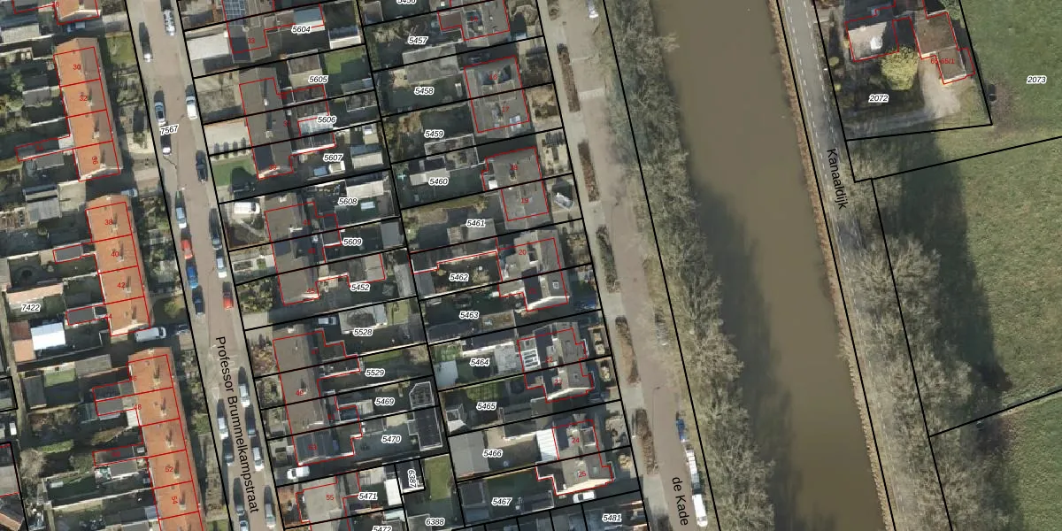 Het perceel waarop de Kade 20 staat heeft een oppervlakte van 292 m². Dit is een middelgroot perceel. De perceeloppervlakte wordt geregistreerd door het Kadaster. Gedetailleerde informatie over de maten van dit perceel kunt u vinden in het rapport Kadastrale kaart met maatvoering van de Kade 20.