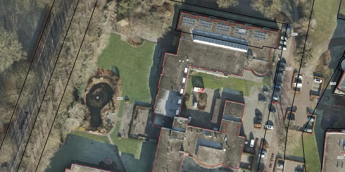 Het perceel waarop de Vree 16 staat heeft een oppervlakte van 1,7 ha. Dit is een zeer groot perceel. De perceeloppervlakte wordt geregistreerd door het Kadaster. Gedetailleerde informatie over de maten van dit perceel kunt u vinden in het rapport Kadastrale kaart met maatvoering van de Vree 16.