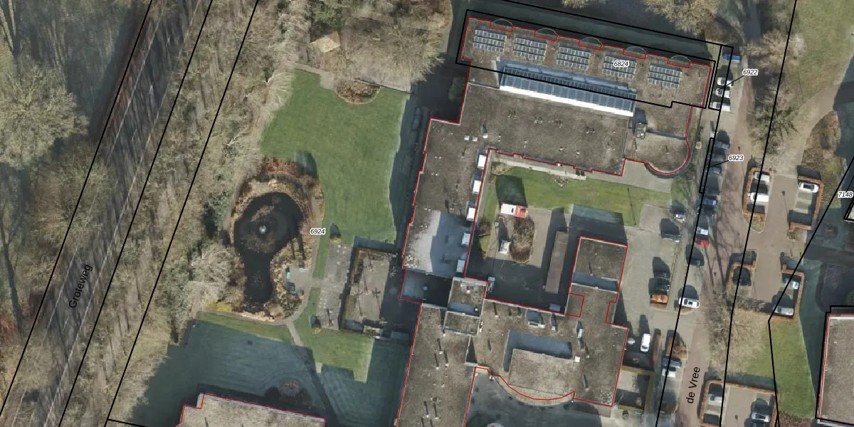Het perceel waarop de Vree 19 staat heeft een oppervlakte van 1,7 ha. Dit is een zeer groot perceel. De perceeloppervlakte wordt geregistreerd door het Kadaster. Gedetailleerde informatie over de maten van dit perceel kunt u vinden in het rapport Kadastrale kaart met maatvoering van de Vree 19.