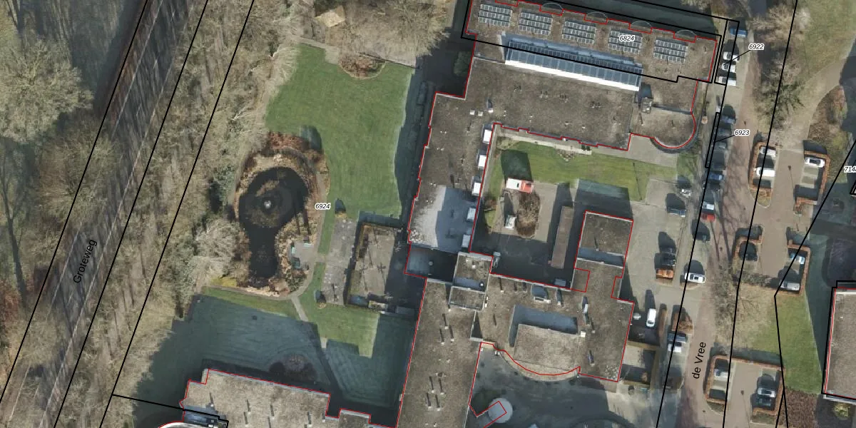 Het perceel waarop de Vree 21 staat heeft een oppervlakte van 1,7 ha. Dit is een zeer groot perceel. De perceeloppervlakte wordt geregistreerd door het Kadaster. Gedetailleerde informatie over de maten van dit perceel kunt u vinden in het rapport Kadastrale kaart met maatvoering van de Vree 21.