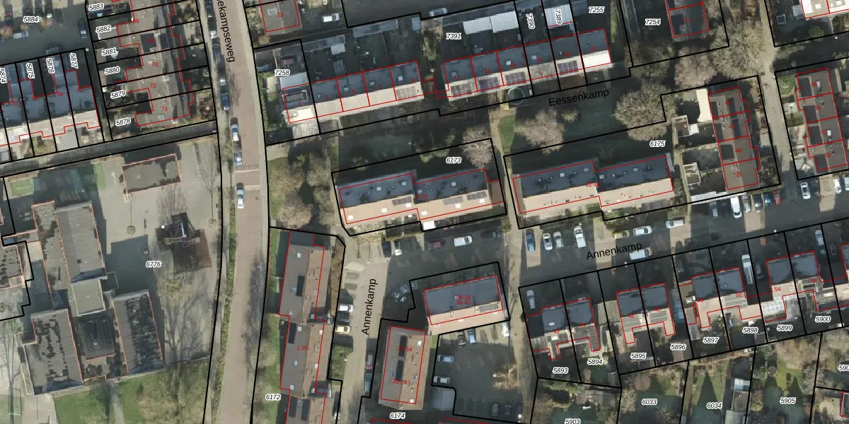 Het perceel waarop Eessenkamp 16 staat heeft een oppervlakte van 665 m². Dit is een groot perceel. De perceeloppervlakte wordt geregistreerd door het Kadaster. Gedetailleerde informatie over de maten van dit perceel kunt u vinden in het rapport Kadastrale kaart met maatvoering van Eessenkamp 16.