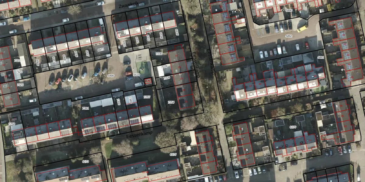 Het perceel waarop Eessenkamp 25 staat heeft een oppervlakte van 410 m². Dit is een groot perceel. De perceeloppervlakte wordt geregistreerd door het Kadaster. Gedetailleerde informatie over de maten van dit perceel kunt u vinden in het rapport Kadastrale kaart met maatvoering van Eessenkamp 25.