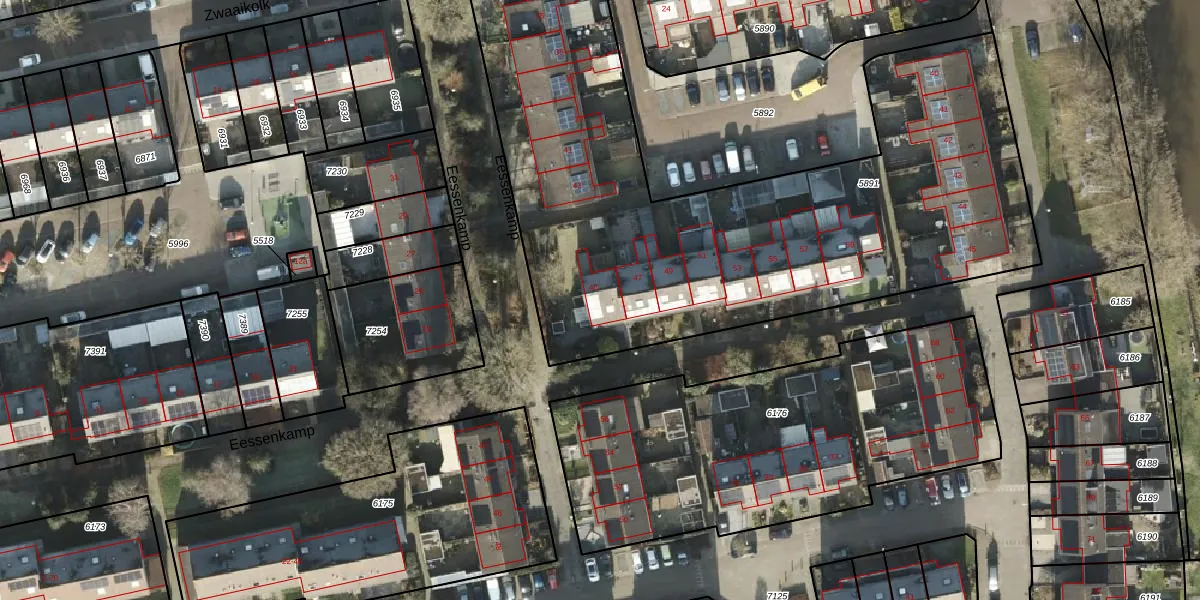 Het perceel waarop Eessenkamp 45 staat heeft een oppervlakte van 3258 m². Dit is een zeer groot perceel. De perceeloppervlakte wordt geregistreerd door het Kadaster. Gedetailleerde informatie over de maten van dit perceel kunt u vinden in het rapport Kadastrale kaart met maatvoering van Eessenkamp 45.