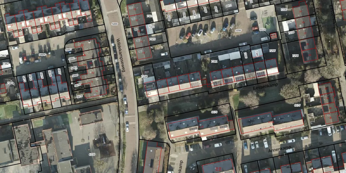 Het perceel waarop Eessenkamp 5 staat heeft een oppervlakte van 1410 m². Dit is een zeer groot perceel. De perceeloppervlakte wordt geregistreerd door het Kadaster. Gedetailleerde informatie over de maten van dit perceel kunt u vinden in het rapport Kadastrale kaart met maatvoering van Eessenkamp 5.