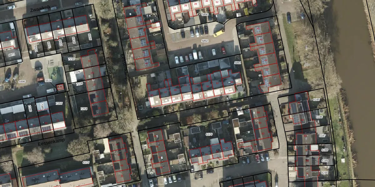 Het perceel waarop Eessenkamp 51 staat heeft een oppervlakte van 3258 m². Dit is een zeer groot perceel. De perceeloppervlakte wordt geregistreerd door het Kadaster. Gedetailleerde informatie over de maten van dit perceel kunt u vinden in het rapport Kadastrale kaart met maatvoering van Eessenkamp 51.