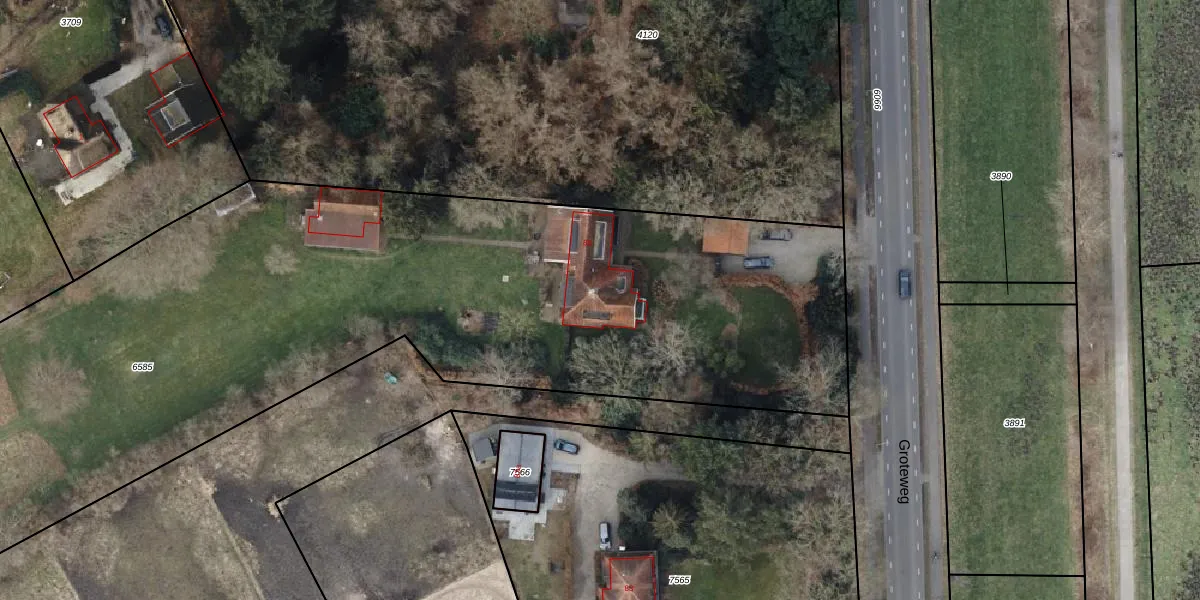 Het perceel waarop Groteweg 85 staat heeft een oppervlakte van 7455 m². Dit is een zeer groot perceel. De perceeloppervlakte wordt geregistreerd door het Kadaster. Gedetailleerde informatie over de maten van dit perceel kunt u vinden in het rapport Kadastrale kaart met maatvoering van Groteweg 85.