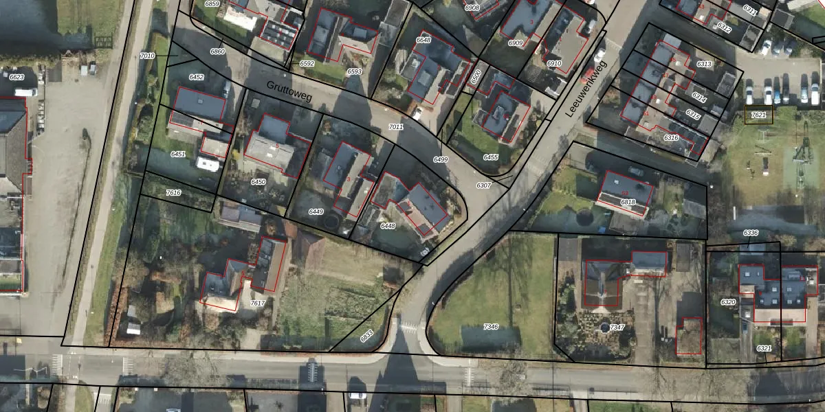 Gruttoweg 1 is gelegen op kadastraal perceel HDE00C6448. Deze kadastrale aanduiding is uniek en wordt gebruikt door het Kadaster om eigendomsrechten en andere zakelijke rechten vast te leggen. Het perceel maakt onderdeel uit van de kadastrale gemeente Heerde.
