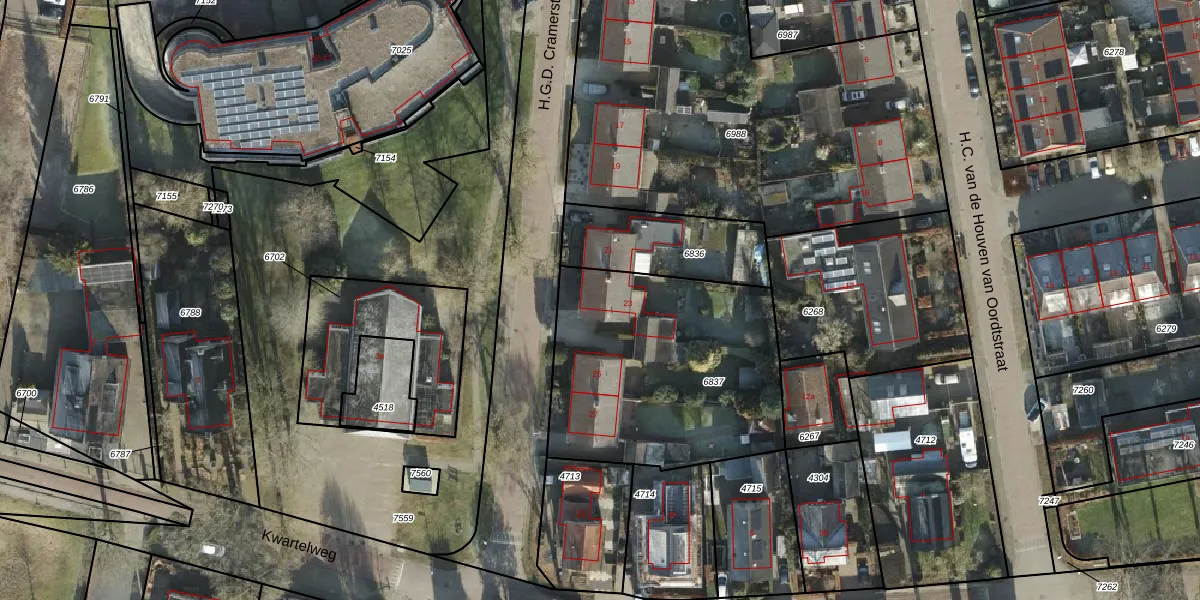 Het perceel waarop H.G.D. Cramerstraat 23 staat heeft een oppervlakte van 1163 m². Dit is een zeer groot perceel. De perceeloppervlakte wordt geregistreerd door het Kadaster. Gedetailleerde informatie over de maten van dit perceel kunt u vinden in het rapport Kadastrale kaart met maatvoering van H.G.D. Cramerstraat 23.