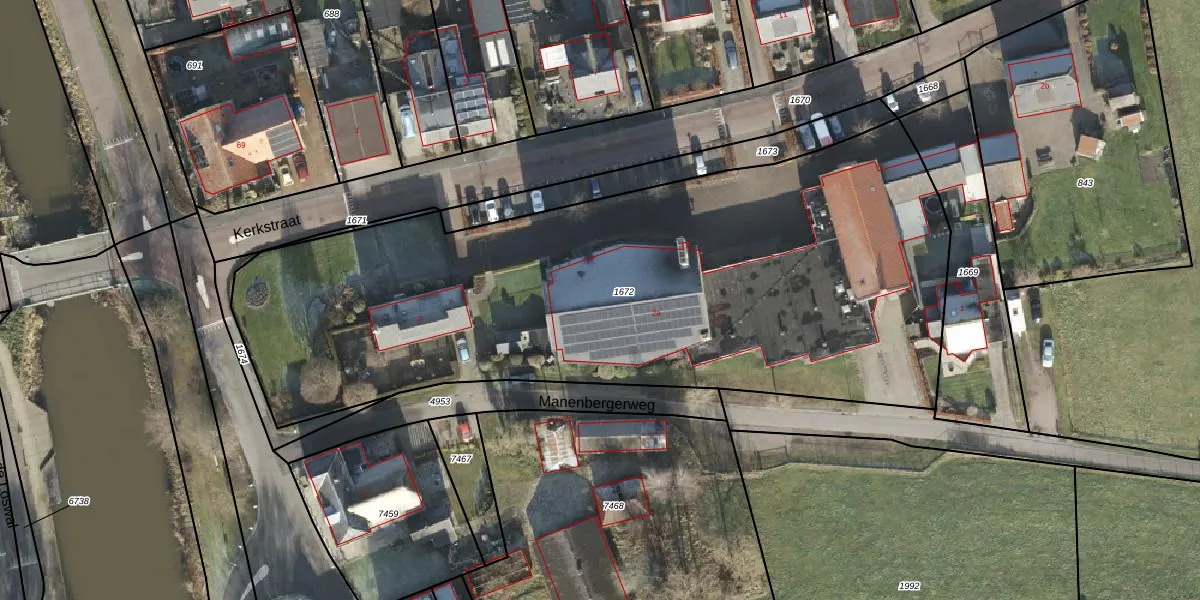 Het perceel waarop Kerkstraat 2-a staat heeft een oppervlakte van 3875 m². Dit is een zeer groot perceel. De perceeloppervlakte wordt geregistreerd door het Kadaster. Gedetailleerde informatie over de maten van dit perceel kunt u vinden in het rapport Kadastrale kaart met maatvoering van Kerkstraat 2-a.