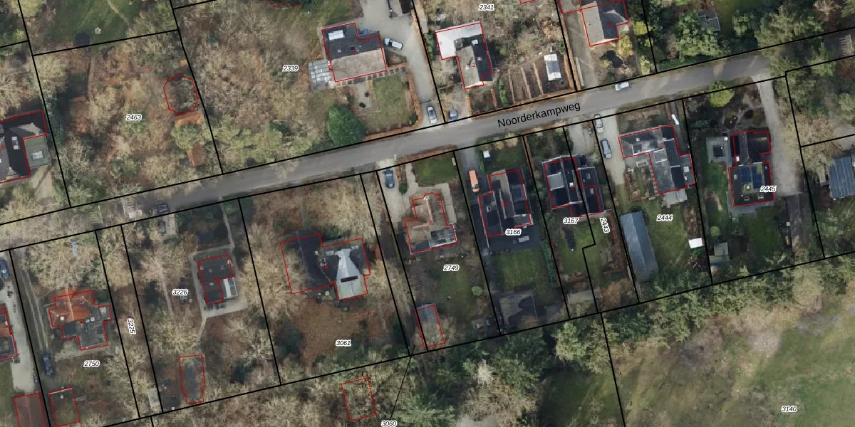 Het perceel waarop Noorderkampweg 7 staat heeft een oppervlakte van 816 m². Dit is een groot perceel. De perceeloppervlakte wordt geregistreerd door het Kadaster. Gedetailleerde informatie over de maten van dit perceel kunt u vinden in het rapport Kadastrale kaart met maatvoering van Noorderkampweg 7.