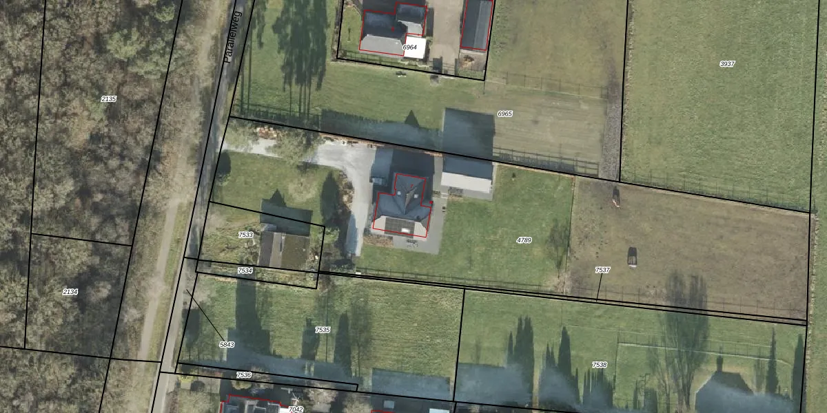Parallelweg 7 is gelegen op kadastraal perceel HDE00C4789. Deze kadastrale aanduiding is uniek en wordt gebruikt door het Kadaster om eigendomsrechten en andere zakelijke rechten vast te leggen. Het perceel maakt onderdeel uit van de kadastrale gemeente Heerde.