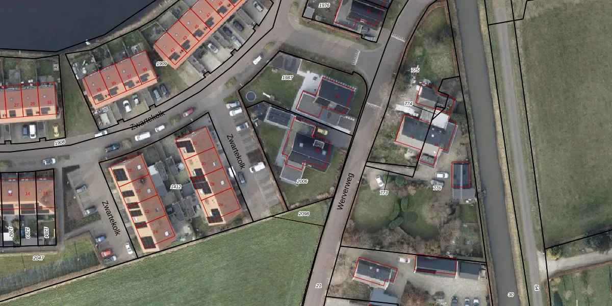 Gebruik de zoekbalk of klik op een perceel voor informatie over de adressen binnen dit perceel.