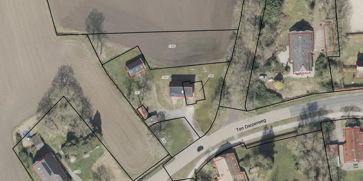 Het adres is gelegen op perceel 1497 in de sectie H en de kadastrale gemeente Diever. De kadastrale aanduiding is aldus DVR00-H-1497. Het perceel is 1730 m² groot. Dat is kleiner dan de gemiddelde perceeloppervlakte in Diever, dat op 1,4 ha ligt. Het kleinste perceel in de kadastrale gemeente is 0 m² groot. De grootste perceeloppervlakte is 8,16 km². Dit is het enige adres dat aanwezig is op het perceel. De huidige grenzen van het perceel zijn digitaal in de Basisregistratie Kadaster (BRK) geregistreerd op 15-04-2022.
