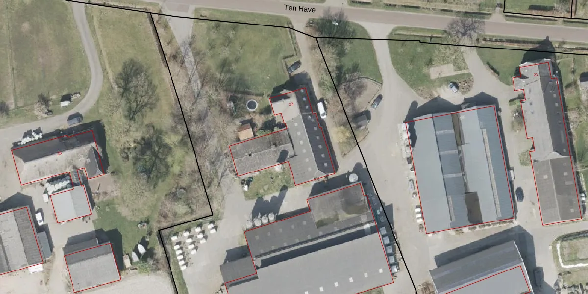 Het perceel waarop Ten Have 23 staat heeft een oppervlakte van 4,3 ha. Dit is een zeer groot perceel. De perceeloppervlakte wordt geregistreerd door het Kadaster. Gedetailleerde informatie over de maten van dit perceel kunt u vinden in het rapport Kadastrale kaart met maatvoering van Ten Have 23.