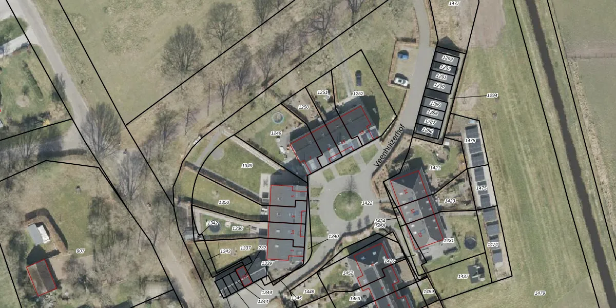 Het perceel waarop Veenhuizerhof 7 staat heeft een oppervlakte van 371 m². Dit is een groot perceel. De perceeloppervlakte wordt geregistreerd door het Kadaster. Gedetailleerde informatie over de maten van dit perceel kunt u vinden in het rapport Kadastrale kaart met maatvoering van Veenhuizerhof 7.