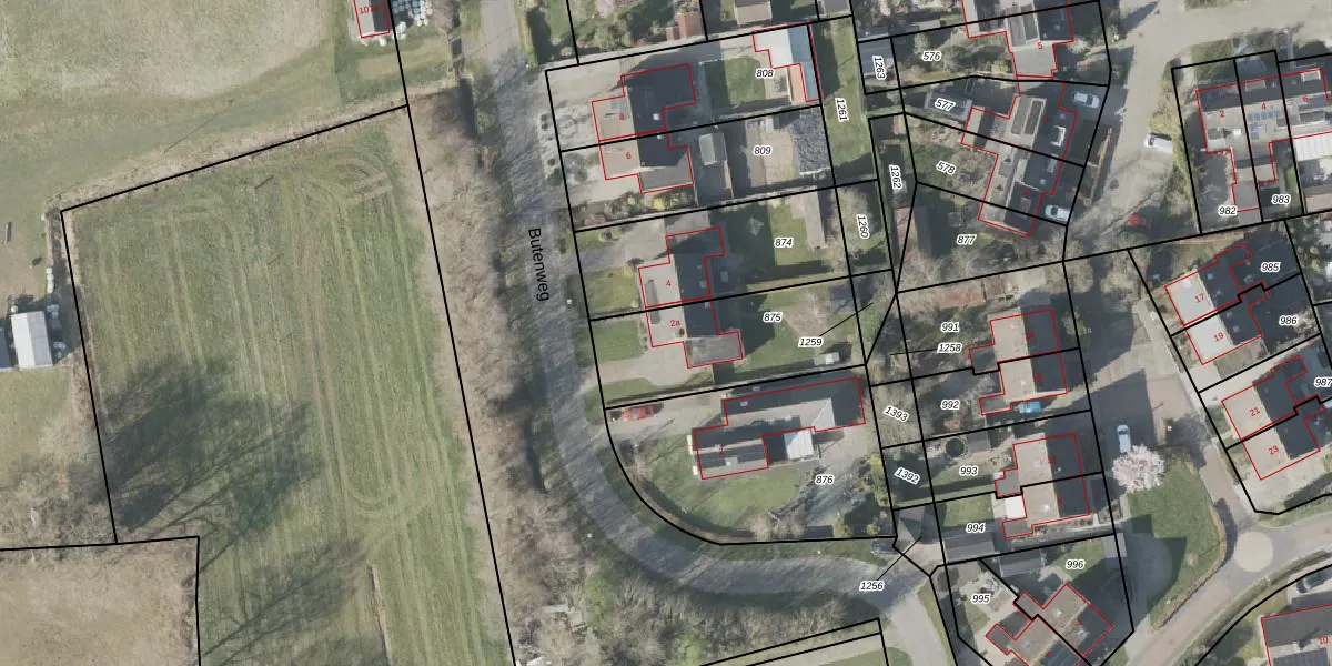 Het perceel waarop Butenweg 2-a staat heeft een oppervlakte van 536 m². Dit is een groot perceel. De perceeloppervlakte wordt geregistreerd door het Kadaster. Gedetailleerde informatie over de maten van dit perceel kunt u vinden in het rapport Kadastrale kaart met maatvoering van Butenweg 2-a.