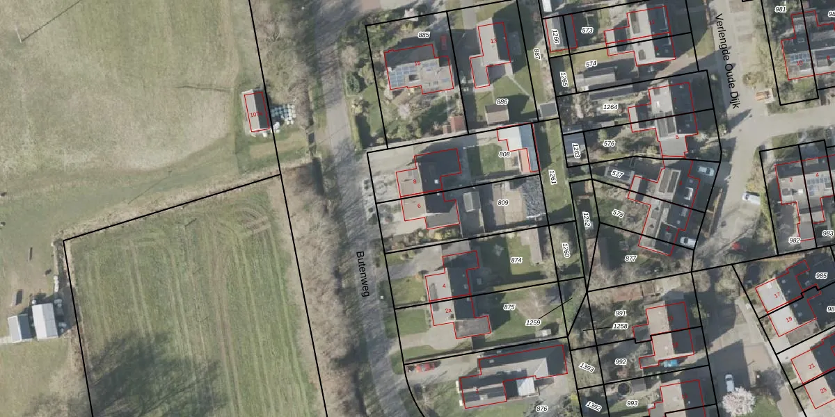Het perceel waarop Butenweg 6 staat heeft een oppervlakte van 500 m². Dit is een groot perceel. De perceeloppervlakte wordt geregistreerd door het Kadaster. Gedetailleerde informatie over de maten van dit perceel kunt u vinden in het rapport Kadastrale kaart met maatvoering van Butenweg 6.