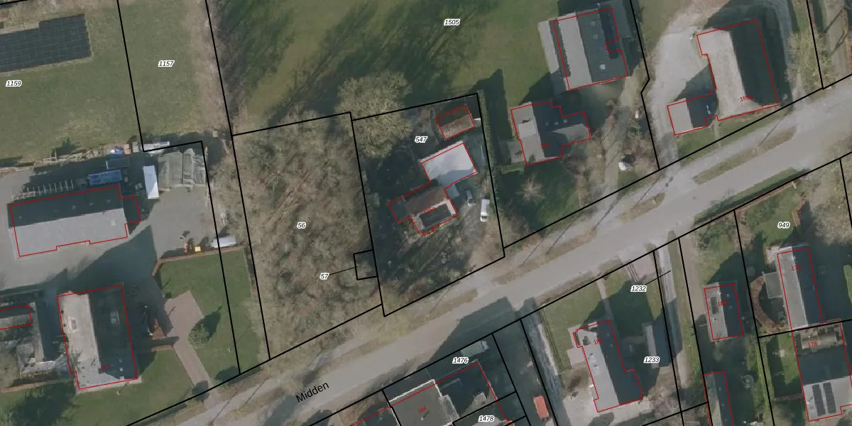Midden 155-a is gelegen op kadastraal perceel HVT03N547. Deze kadastrale aanduiding is uniek en wordt gebruikt door het Kadaster om eigendomsrechten en andere zakelijke rechten vast te leggen. Het perceel maakt onderdeel uit van de kadastrale gemeente Havelte.