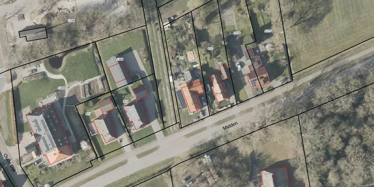 Het perceel waarop Midden 57 staat heeft een oppervlakte van 898 m². Dit is een groot perceel. De perceeloppervlakte wordt geregistreerd door het Kadaster. Gedetailleerde informatie over de maten van dit perceel kunt u vinden in het rapport Kadastrale kaart met maatvoering van Midden 57.