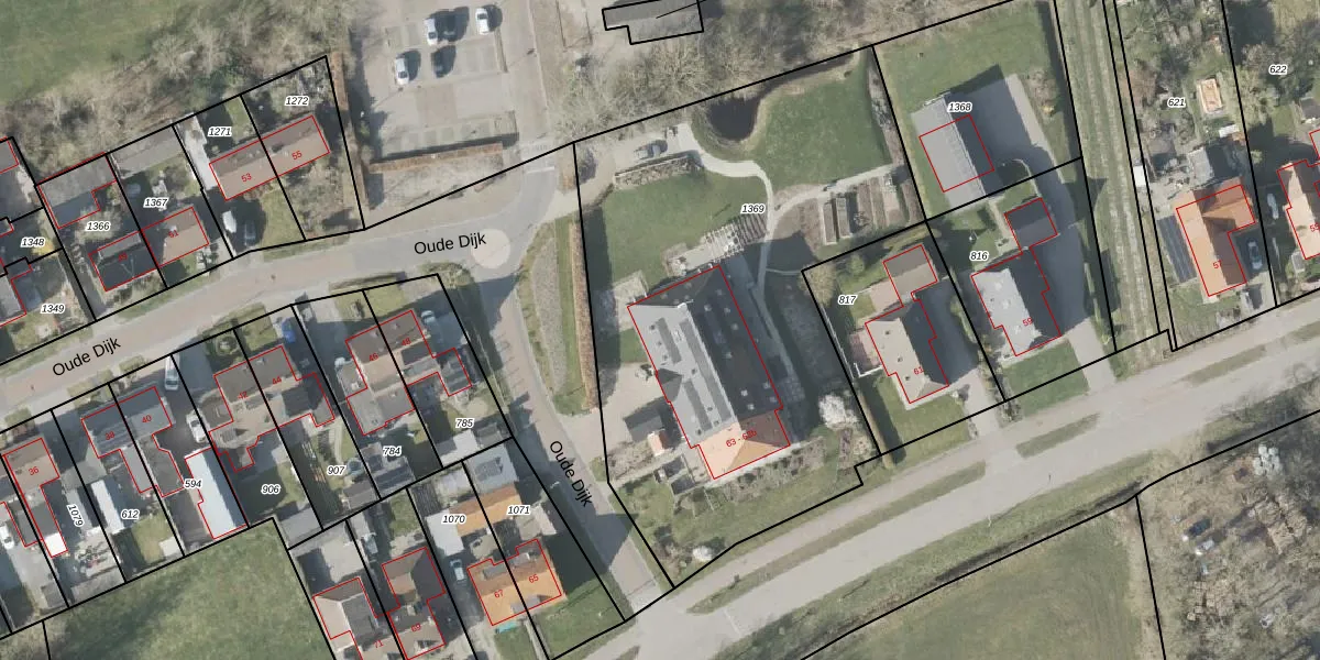 Het perceel waarop Midden 63-a staat heeft een oppervlakte van 2805 m². Dit is een zeer groot perceel. De perceeloppervlakte wordt geregistreerd door het Kadaster. Gedetailleerde informatie over de maten van dit perceel kunt u vinden in het rapport Kadastrale kaart met maatvoering van Midden 63-a.
