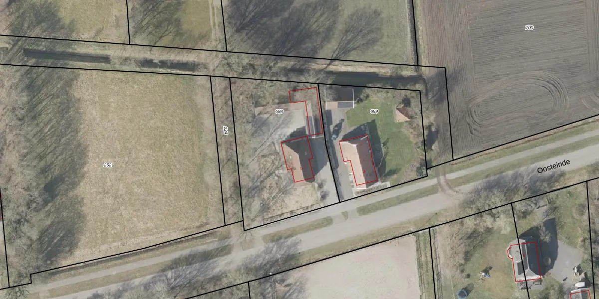 Oosteinde 5 is gelegen op kadastraal perceel HVT03N698. Deze kadastrale aanduiding is uniek en wordt gebruikt door het Kadaster om eigendomsrechten en andere zakelijke rechten vast te leggen. Het perceel maakt onderdeel uit van de kadastrale gemeente Havelte.