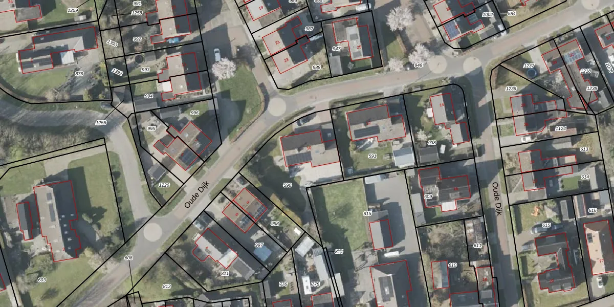 Gebruik de zoekbalk of klik op een perceel voor informatie over de adressen binnen dit perceel.